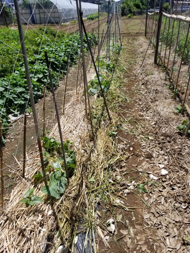 猫エサ燕麦 ウリ畝草マルチ 篠原早生白の種採り