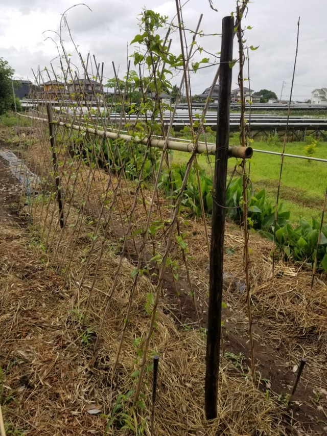 ?は、第1菜園の西側の一日中日の当たる場所である。昨年は、6月頃には午前中日が当たらない場所に作ってしまって、つくね芋があまり大きく育たなかっ···