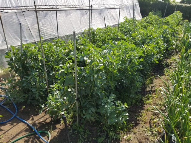 そら豆の初収穫 ジャンボニンニクの芽 ジャガイモ土寄せ