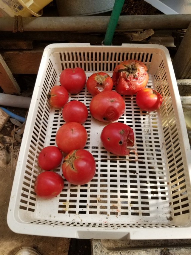 ?は、アロイトマトの自家採種である。今年は、オオタバコガに穴をあけられてしまったトマトがたくさん出た。捨てるだけではもったいないので、完熟さ···