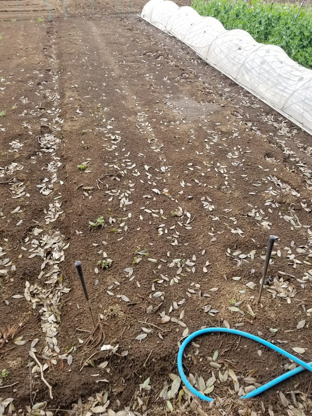 暴風で倒されたそら豆とほうれん草の修復 サツマイモ苗 苗の育苗状況