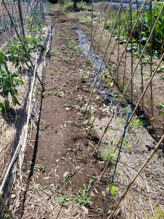 人参最終の間引き インゲン、金時豆 トマト植え付け完了 ナスの待ち肥